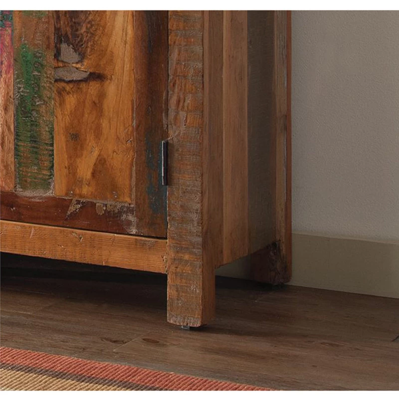 Let this handcrafted wood accent cabinet bring a rustic feel to your interior. It’s handcrafted with beautiful reclaimed wood material that stands up to years of use. Acacia and teak wood combine for a charming mix of dark and light brown colors.