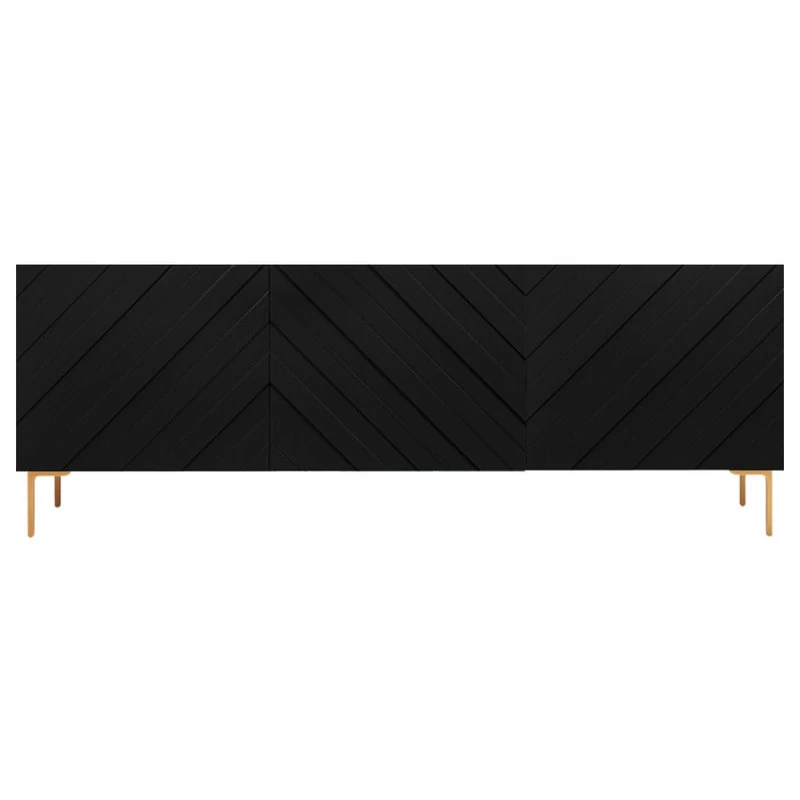 The cabinet door uses the environmental protection water-based paint, the line is clear. Supported by four straight golden legs. The 3 doors have a V-shaped pattern, a little bit of texture appeal, and there are two shelves where you can keep all your dining room or living room necessities, from excess linen to dishes you never use.