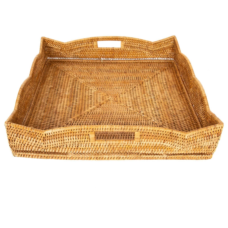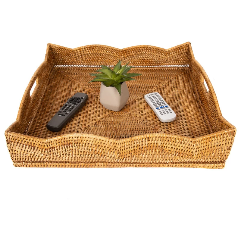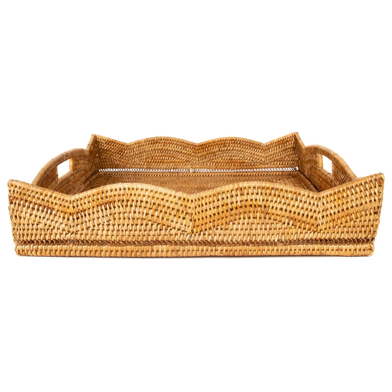 Our Scallop Collection rattan storage baskets, serving trays, and ottoman trays will instantly add a gorgeous touch to any room of your home. Made with an intricate design to provide an eye-catching and space-saving way to change up the look of any room.