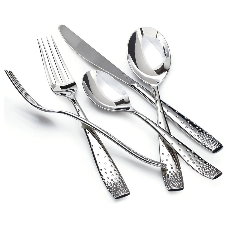 The arresting Dazzle Flatware 5-Piece Set is the epitome of luminous style and gorgeous substance. The handles are emblazoned with round, mirror-polished facets, like a fine glitter of stars. Full of fashion, fun, and personality, this alluring set works with formal, contemporary, and everyday dinnerware. Crafted from 18/10 stainless steel, this dishwasher-safe flatware set includes one each of a salad fork, dinner fork, dinner knife, soup spoon, and teaspoon.