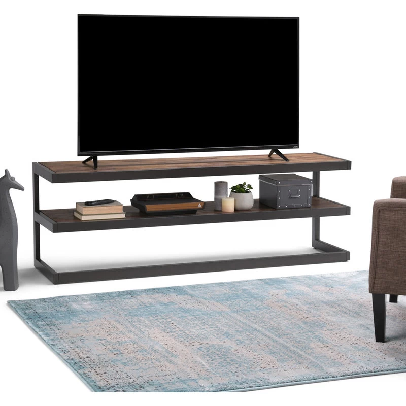Bring a bit of industrial, contemporary appeal to your space with the Erina Low TV Media Stand. The solid Acacia top perfectly complements the clean-lined, black-finished base and frame. This functional TV Stand provides a durable base for your widescreen TV, as well as open storage for media, game components and accessories. The Erina Low TV Media Stand is a perfect piece for your on-trend environment.