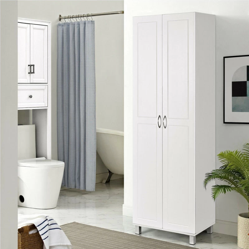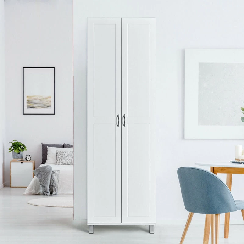 Update your storage space using this 2-Door Tall Storage Cabinet! It is an ideal storage solution for any home setting. The double door storage cabinet provides concealed storage to hide clutter. Utilize it to store various supplies to complete work throughout the day. The home storage cabinet offers an adjustable shelf, which can be adjusted to make room for taller items when needed. The decorative handles complement the stylish look. Widely use the tall cabinet in your home, office, dorm or bedroom as it helps to keep items organized and out of the way when not in use.