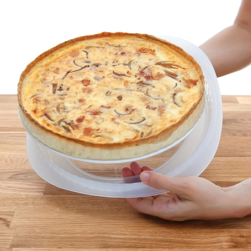 Create a chef inspired breakfast with this quiche pan from Lekue. Fabricated from red Platinum silicone, it includes a white ceramic plate for baking and for serving. The high-quality Platinum silicone construction is nonstick and requires no greasing, making it easy to release food. Heat safe up to 500 degrees Fahrenheit, it is safe for use in the microwave, freezer, oven, and refrigerator. Resistant to flavor and odor absorption, it can be folded for a compact storage solution and will not lose its shape or become deformed. With ergonomic handles for easy transport, this quiche pan is also dishwasher safe, making clean up a breeze.