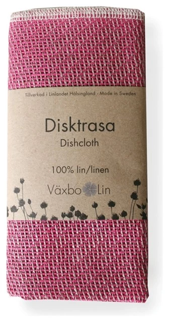 Linen Disktrasa Dishcloth – 33 x 33 cm (13″ x 13″) – 100% Linen made by Vaxbo Lin AB in Sweden. For their dishcloth they use a weaving technique that makes it absorbent and supple. Each cloth has proper selvedge edges and two hems. Linen has the unique property of absorbing moisture better and drying more quickly than any other natural fibre. A pure-linen dishcloth absorbs effectively so that it wipes things really dry. The linen dishcloth can be machine-washed at 60 ÌŠC or boiled in a saucepan.