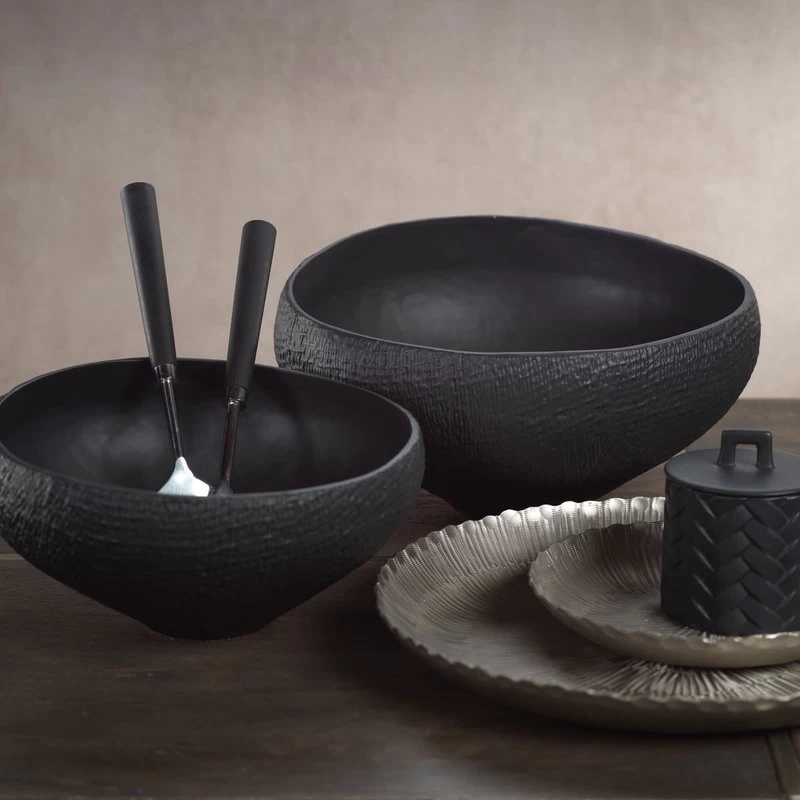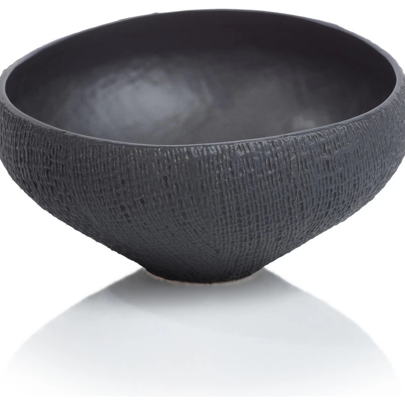 Unique finishes coat the clean, modern shapes of this ceramic bowl with subtle weave exterior and smooth shinny glaze interior. Perfect for serving small salads, fruits, and desserts.