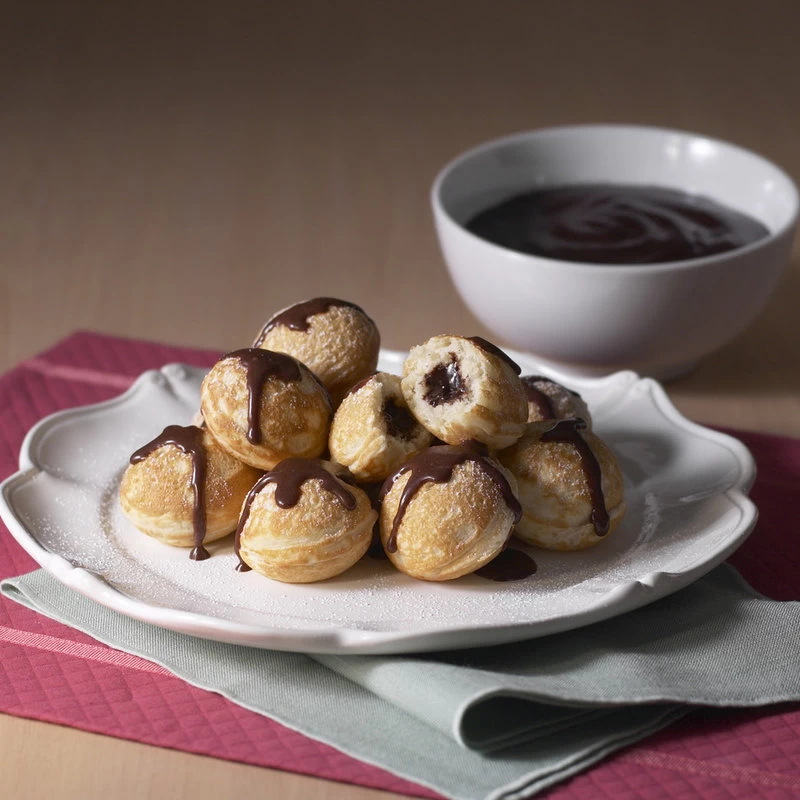 Break out your pancake mix and create traditional Danish Ebelskivers, delicious round pancakes with fillings inside, for breakfast. This cast pan from Nordic Ware makes up to seven 2-1/4 inch fruit or cheese-filled spherical creations at a time, perfect for dusting with powdered sugar and dipping into sauces. The non-stick surface makes flipping easy, as well as clean-up a breeze. The long comfortable handle makes this pan easy to use and is perfect for cooking delicious breakfasts and snacks for the whole family. Backed by a one-year manufacturer’s limited warranty, this pan is a great way to enjoy a classic treat any time.
