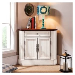 Farmhouse Corner Accent Cabinet Distressed Triangle Cabinet With Doors White