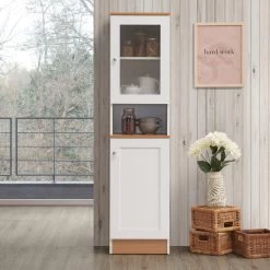 Brecker Sliding Door China Curio Cabinet With Adjustable Storage, White