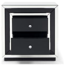 Modern Malibu Side Table Clear Smoked Black Mirrored Finish 2 Drawers