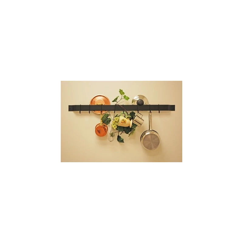 The 36″ Rogar Steel Bar rack is 36 inches long and includes 8 chrome hooks. Mounting hardware is included. This bar rack is ideal for kitchen storage use of pots, pans, and utensils. Keeps everyday items at an arms reach away.