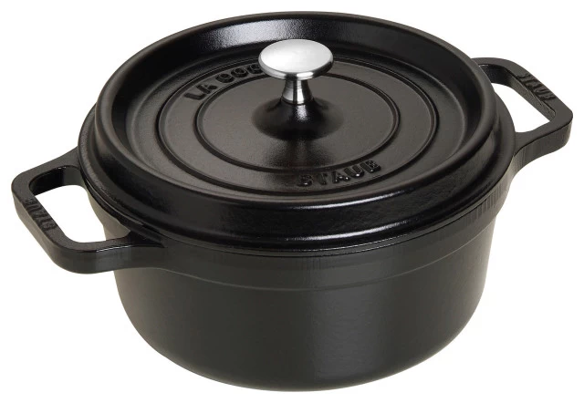 The Staub cocotte is unsurpassed for slow-cooking meats and vegetables to tender perfection, and for simmering hearty stews and soups. Cast iron possesses exceptional heat-retaining qualities, so the pot heats evenly throughout. The innovative lid features tiny spikes on the interior that continually release condensed liquid back onto the food, yielding moist, flavorful results.Staub’s special matte black enamel interior and self-basting spiked lid guarantee perfect browning and braising for flavor-enhanced food. With their exquisite enamel finish, each piece transitions beautifully from the kitchen to the table. From comfort food to sumptuous suppers, every dish is special when served in Staub.Staub enameled cast iron cookware is the choice of the world’s best chefs. With exceptional durability, it is perfect for day-to-day use in both gourmet home kitchens and prestigious restaurants around the world. Built to last a lifetime, these heirloom pieces can be passed from generation to generation.