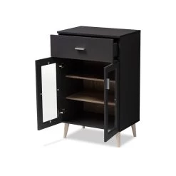 Baxton Studio Marcel Farmhouse And Coastal Dark Gray And Oak Brown Finished Kitchen Cabinet