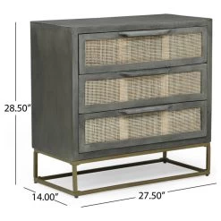 Lithonia Wolfe Handcrafted Boho Mango Wood 3 Drawer Cabinet, Gray And Natural